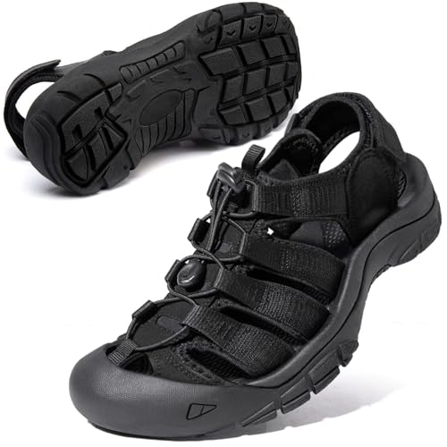 メンズ水陸両用スポーツサンダル。軽量で防滑性に優れ、キャンプや登山、川遊び、海水浴に最適です。おしゃれなブラックデザインで、サイズ24.5cm。