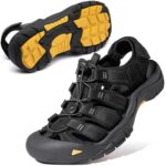 MERPHINE アウトドアサンダル メンズ、グレイブラック。スポーツにも適したデザインで、つま先保護機能付き。27.0 cmサイズで、ウォーキングやトレッキング、釣りなどのアクティビティに最適なサマーサンダルです。