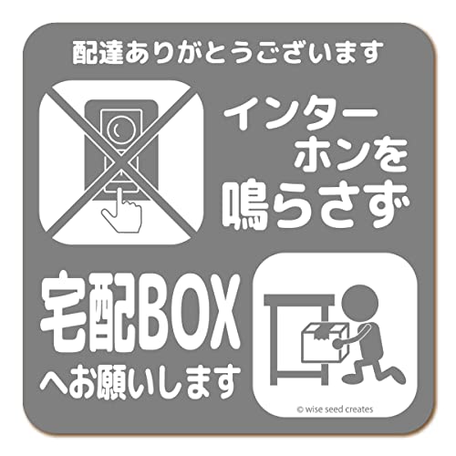 WISE SEED 宅配ボックス用のマグネットステッカー。インターホン不要で置き配OK。チャイムを鳴らさずに宅配物を受け取るメッセージプレート(グレー)。MG-LS006-BIモデル。
