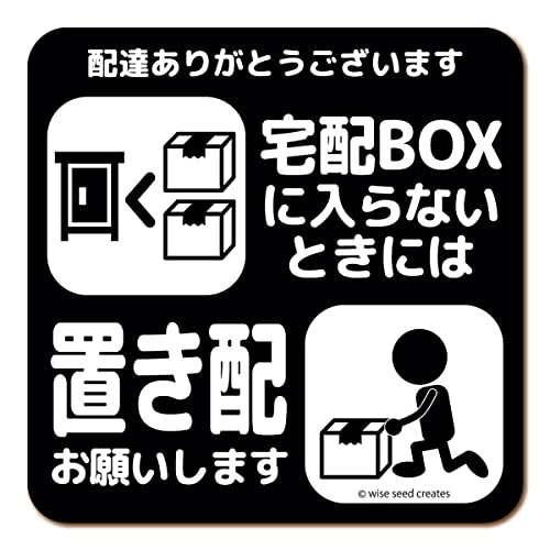 WISE SEED 置き配お願いステッカー (マグネットタイプ)MG-LS006。置き配OKのメッセージを掲示, 宅配ボックス、マンションやアパートに最適。不在時の再配達をスムーズに。ブラックデザイン。