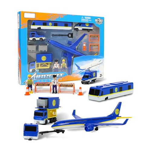 QIYUMOKE 空港プレイセットは、子供用のインタラクティブなおもちゃです。飛行機、地上支援車両、そしてフィギュアが含まれ、3歳以上の男女に適しています。ダークブルー版。