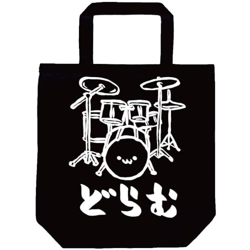 サモエスキーの黒いトートバッグ。ドラムやドラマーをテーマにした筆絵イラストが特徴。バンドや楽器好きにぴったりなおもしろデザイン。おしゃれで実用的なアイテムです。