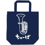 サモエスキーのちゅーばチューバオーケストラの楽器をテーマにしたイラスト入りトートバッグ。ネイビー色で、おもしろいデザインが特徴。日常使いにもオススメです。