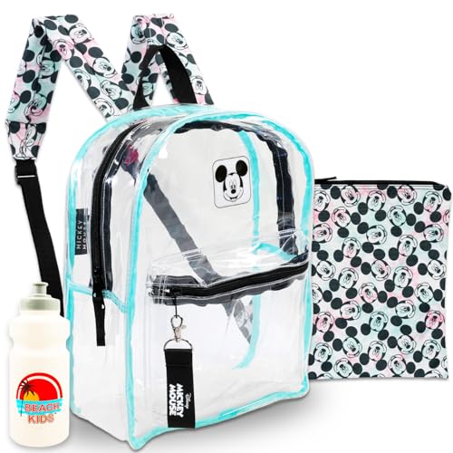 ディズニーのミッキーマウスクリアバックパックセット。16インチの透明バックパック、取り外し可能なラップトップポーチ、ウォーターボトル付き。ティーンや大人に最適なノートパソコンバッグです。