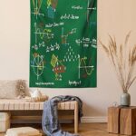 Lunarableヒマワリタペストリー、ツインサイズ。アーストーンズデザインのロマンチックなブルーイエローのローズフラワー柄。壁掛けやベッドカバーに最適なヴィンテージスタイル。
