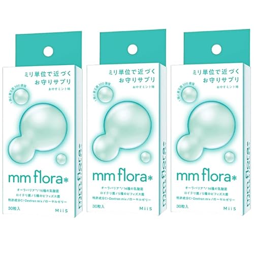 《TVCMで話題沸騰!》mm floraの「おやすミント味」は、口臭ケアに特化した口臭タブレット。乳酸菌ロイテリ菌を含み、オーラバリアをサポート。菌活を促進し、口内フローラを整えます。3個セットでお得!