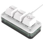 BRIMFORDのショートカットキーボードは、プログラマブルでカスタム可能なキーを備えた片手用メカニカルキーボード。赤軸、ホットスワップ対応、LED効果あり。コピー&ペースト&カット機能も搭載。
