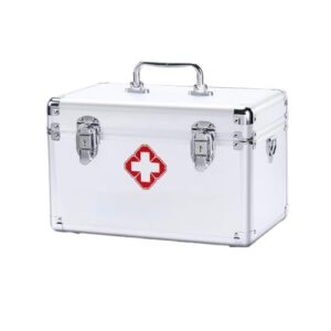 SIzlaho 家庭用救急箱 薬箱 医療箱 薬箱 小物収納ボックス 薬品収納ボックス アルミ合金製 大容量 携帯便利 安全ロック付き 取っ手付き 持ち運び便利 防災 多層仕切り 防水 緊急災害用 外傷用 (30.5*17*19cm)