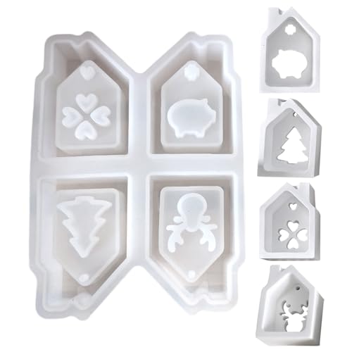 シリコンハウス型の4キャビティクリスマスキャスティング用品。パーティープランナーやアート教師に最適な商品で、ホリデーのテーマイベントやワークショップにぴったりです。