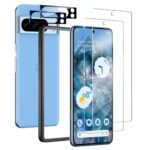 Besecou ガラスフィルムは、Google Pixel 8 Pro用の強化ガラス製で、2枚の液晶保護とカメラフィルム2枚が付属。9H硬度、耐衝撃、指紋防止、気泡防止機能付き。指紋認証対応で高感度タッチ、撥油防水と飛散防止も備えています。