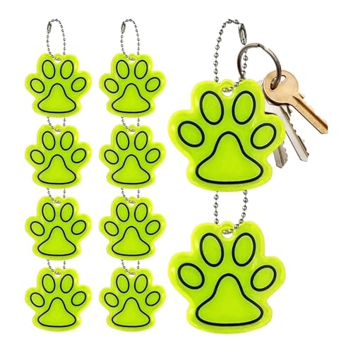 猫の肉球形キーホルダーペンダント10個セット。反射機能付きで、ティーンズや女性、女の子、コレクター、ペット愛好家に最適。学校や旅行、バッグのアクセサリーにおすすめ。