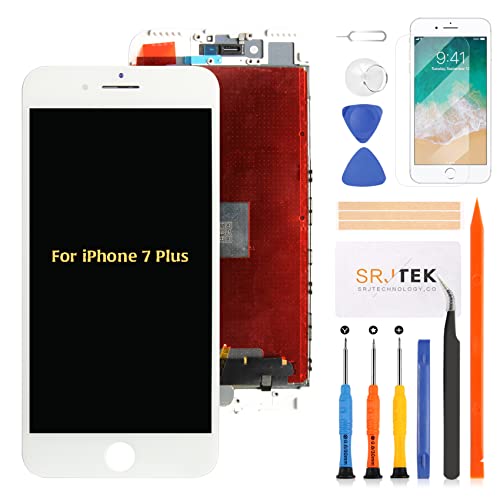 SRJTEKのiPhone 7 Plus用液晶画面交換キット。5.5インチのOEM液晶パネルとタッチパネルデジタイザー、A1661/A1784/A1785対応。修理工具付きで簡単に交換可能。ホワイト。