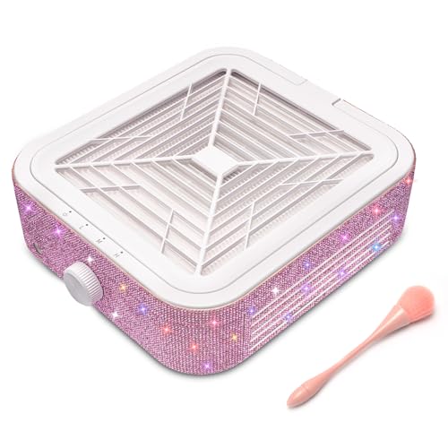 CGBEのネイル集塵機は120Wの強力な吸引力を持ち、回転数は12000rpm。2枚のフィルターとブラシが付属し、ダストバッグ不要で清掃が簡単。卓上で使えるピンクダイヤモンドデザインです。