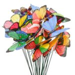 MrMrKuraのガーデンピックバタフライ30本セットは、カラフルな蝶のデザインが特徴的で、PVC製の屋外用ガーデン装飾です。園芸や庭飾りに最適なオーナメントです。