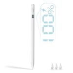 MEKO iPadペンはLED電量表示や15分急速充電に対応。超高感度で傾き感知、磁気吸着機能、パームリジェクション機能も備えています。2018年以降のiPadに対応し、ペン先3枚付きのホワイトデザインです。