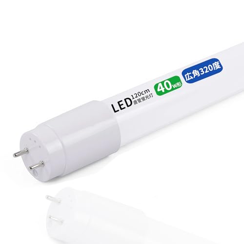 LED蛍光灯40W形、直管120cm、広角度、グロー式工事不要、両側給電。T8規格1198mm、口金G13。電球色、節電効果あり。1本販売。