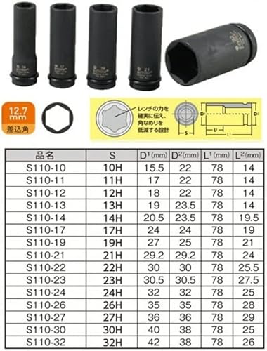 薄型 ロングソケット 23HEX 23mm 1個 全長 78mm 12.7sq 工具 ソケット 12.7角 1/2 TIPTOP チップトップ プロ用 業務用 S110-23