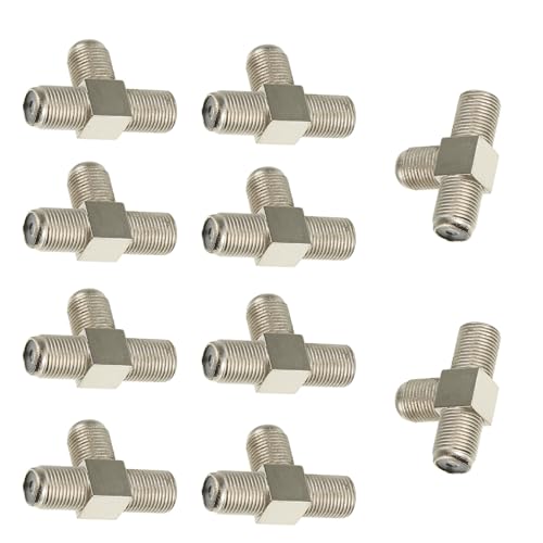 TOMETURE F型スプリッター3ウェイ同軸ケーブルコネクタ10個セットは、ニッケルメッキ亜鉛合金製で、ケーブルテレビ信号分配に最適です。モデムのパケット損失を防ぎ、高品質な信号を提供します。