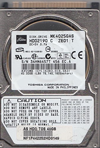 東芝 2.5インチ内蔵HDD 40GB MK4025GASは、IDE/ATA100インターフェースを使用し、9.5mmの厚さで4200rpmの回転速度、8MBのキャッシュを備えています。データ消去&フォーマット済み。