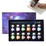 初心者向けのガラスディップカリグラフィーペンセット。12色のインクが含まれ、漏れ防止機能付きでイラストやカリグラフィーに最適な用品です。