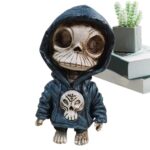 ハロウィンに最適なスケルトンフィギュア。樹脂製のミニチュアで、卓上やシェルフのデコレーションにぴったり。子供から大人まで楽しめるユニークなオーナメントです。