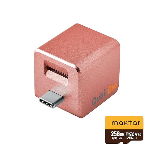 Maktar Qubii Duo USB Type Cは、256GBのmicroSD付きで、iPhoneやiPadのデータを充電しながら自動バックアップ。SDロック機能搭載で、写真や音楽、連絡先の移行も簡単。MFi認証取得商品。