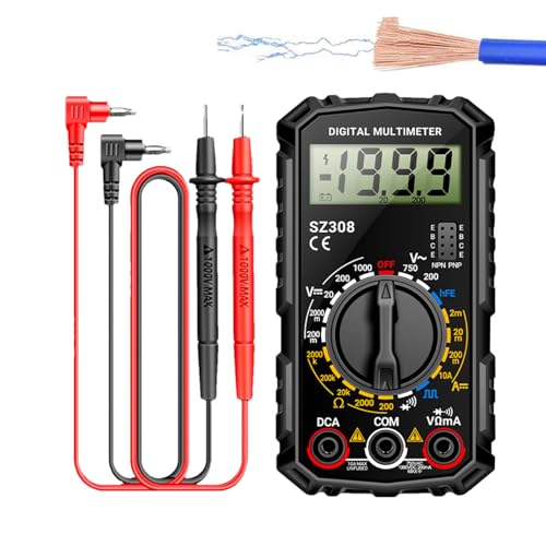 SZ308デジタルマルチメーターは2000カウントで、電圧・電流・抵抗・ダイオード測定が可能。バックライト付きLCDディスプレイが便利な家庭用電気テスター。