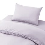 リコメン堂の布団カバーセットはシングルサイズの3点セットです。洗えるピーチスキン素材で、低ホルム的な安心感があります。色はライトパープルで、掛け布団、敷き布団、枕カバーが含まれています。