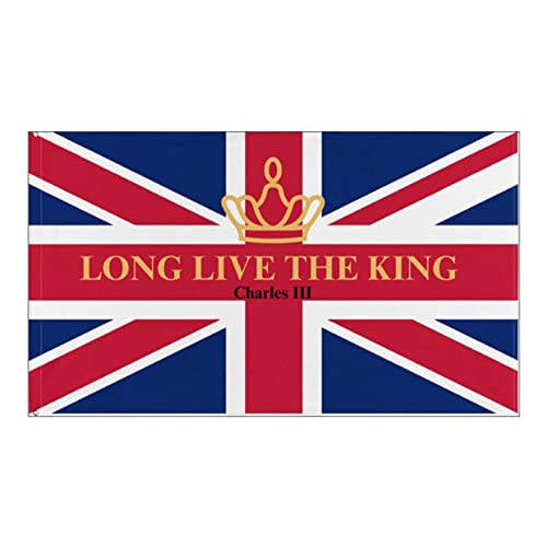 新国王チャールズ3世の旗、3x5FTサイズのユニオンジャック。耐久性があり、屋外装飾に最適な長寿記念のバナーです。