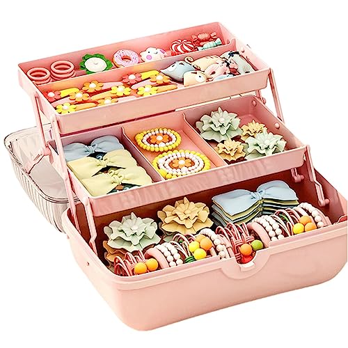 Kelogluのヘアゴムオーガナイザーは、ポータブルハンドル付きの3層収納ボックスで、ヘアビーズ、裁縫用品、ネイル、メイクアップアクセサリーを整理できます。