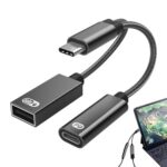 Cスプリッターは、15x10x1cmのサイズで60W PD対応。高速充電とデータ送信が可能で、プリンターやマウス、PC、キーボード、カメラデバイスに最適です。