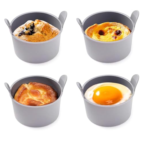 エアフライヤーシリコンボウル4パックは、ラメキンや大きなマフィンカップとして使え、卵料理やデザートにも最適な耐熱ベーキングツールです。