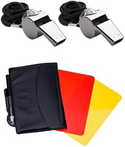 Friencity Referee Card Set Red Yellow Cards and 2 PCS Metal Stainless Steel Whistles with Lanyard, Loud Crisp Sound Whistles Great for Coaches, School Sports, Football, Rugby, Cricket, Tennis