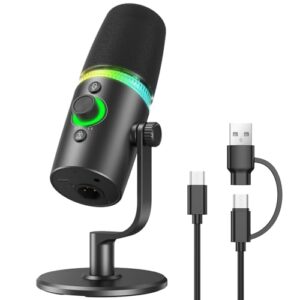 Prizmora USB/XLR ダイナミックマイク ポッドキャスト & ゲーミングマイク PC用 RGB照明付きボーカルマイク タップトゥミュート ゲインコントロール & ヘッドフォンモニタリング YouTubeストリーミング用