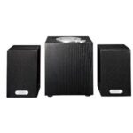 木製2.1chマルチメディアスピーカー(ブラック)は、クリアな音質と迫力のある重低音を提供するスピーカーシステムです。スタイリッシュなデザインで、PCやテレビに最適。外部接続オプションも充実。