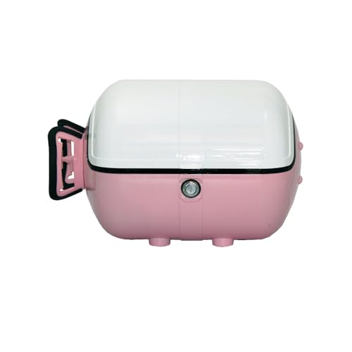 バイク用リアボックス「ボムちゃん」33Lは、軽量で防水・防塵機能を備えています。通勤や通学、デリバリーに最適で、ヘルメットが収納可能。色はホワイトとピンクがあります。