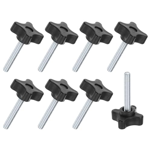 M METERXITYのスタークランプノブは、M6x40mmの雄ネジで8個パック。手締めネジで、機械や電子機器、家具、傘ベースなどに適用可能。サイズは53mm、カラーは黒です。