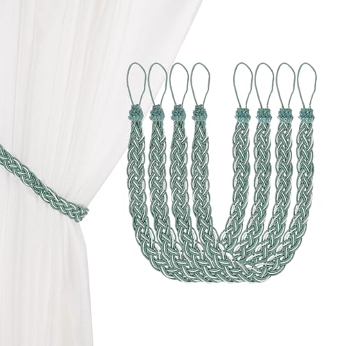 M METERXITYの4本セットカーテンタイバックは、ダーク緑色で黒メタルフック付き。ホールドバックとしてドレープを美しくまとめ、家庭やオフィスの装飾に最適。