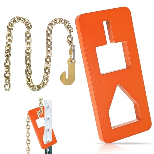 M METERXITY Tポストプーラープレートツールは、39.37インチのリフティングチェーン付きのカーボンスチール製。農場や庭からポストを素早く取り外し可能。トラクターバケットやジャック、Sフックと互換性があります。