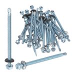 M METERXITYのセルフドリルねじは、亜鉛メッキの炭素鋼製で、#14 x 4サイズ、長さ104mmの六角頭セルフタッピングねじで、25個パックです。ゴムワッシャー付きで金属屋根やスチール構造に最適です。