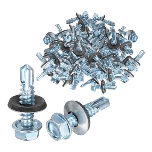 M METERXITYの100個パック、セルフドリルねじは#14 x 1サイズで、亜鉛メッキ炭素鋼製。ゴムワッシャー付きで、長さ29mm。金属屋根、サイディングパネル、スチール構造に最適。