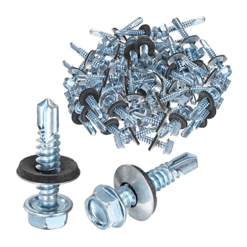 M METERXITY 100個パックのセルフドリルねじです。サイズは#14 x 1-1/4インチ(長さ38mm)。ゴムワッシャー付きで、亜鉛メッキされた炭素鋼製。金属屋根やサイディングパネル、スチール構造に最適です。