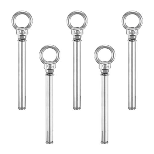 M METERXITYのコンクリートアンカーアイボルトは、M6x120mmサイズで304ステンレススチール製。5個パックで、壁、コンクリート、レンガに最適。シェードセイルや物干しロープ、フェンスにも使用可能。