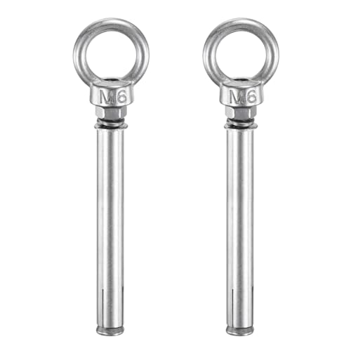 M METERXITYのコンクリートアンカーアイボルトは、M6x100mmサイズで304ステンレス製。2個パックで、壁やコンクリート、レンガに適した拡張ボルト。シェードセイルや物干しロープ、フェンス用に最適です。