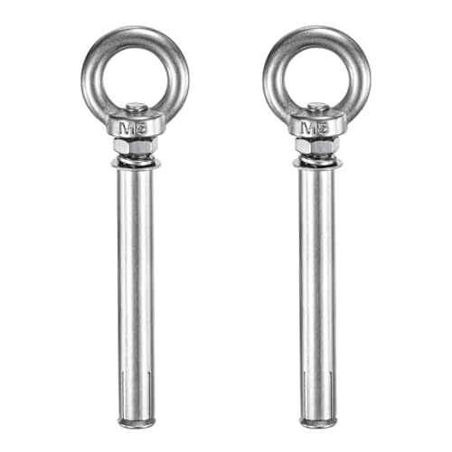 M METERXITYのコンクリートアンカーアイボルトは、M8x120mmサイズで304ステンレス製。2個パックで、壁やコンクリート、レンガに対応。シェードセイル、物干しロープ、フェンス用に最適。