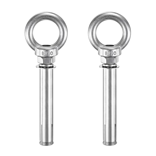 M METERXITYのコンクリートアンカーアイボルトは、M10x120mmサイズで、304ステンレススチール製。壁やコンクリート、レンガに適し、シェードセイルや物干しロープ、フェンスに最適な2個パックです。