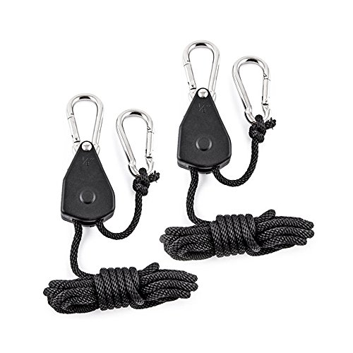 1ペアのロープラチェットは、1/8インチの光照明滑車を備え、最大68kgの荷重をサポートします。ハンギングリフレクター用に最適な製品です。