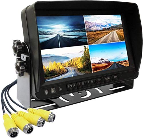 SDカード録画対応の7インチAHDオンダッシュモニター。4ピン同軸ケーブル接続でAHDカメラ専用、4系統の映像入力が可能。4画面同時表示、入力映像の動画保存、バックカメラ連動、24V車対応。