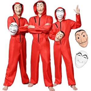 [Formemory] ハロウィン コスプレ ペーパーハウス コスプレ マスク 連体服 マスク2点+つなぎ服1つ 3点セット 仮装 コスチューム スペイン ドラマ ピエロ ハロウィン クリスマス パーティー 学園祭 文化祭 (XL)