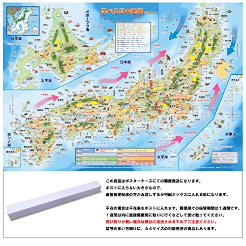 「学べる日本地図 ジュニア」【ポスターケース発送】お風呂ポスター、小学校、中学校の学習に合わせた学習用日本地図、 A2サイズの製品情報